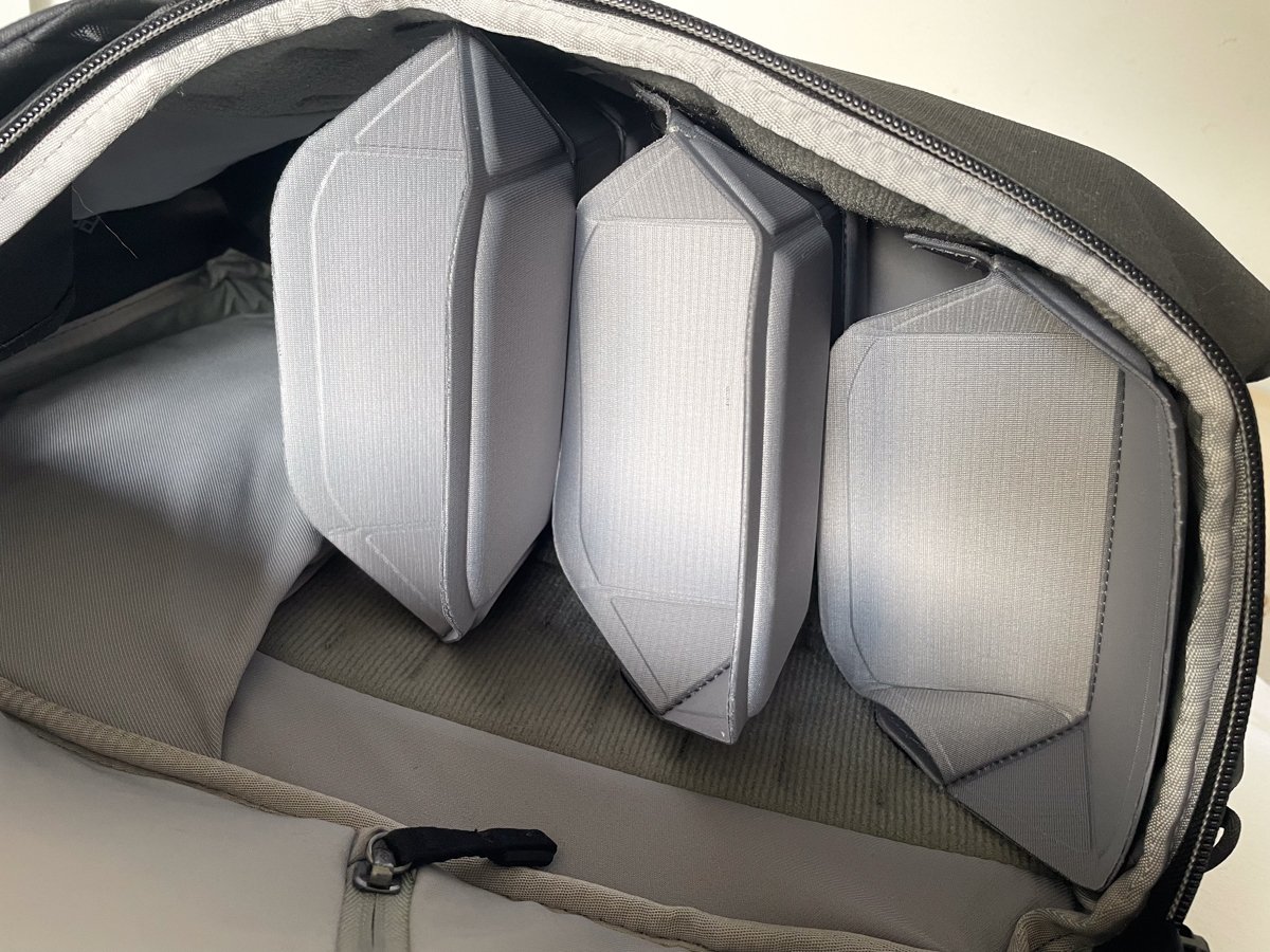 The Peak Design Everyday Backpack V2 features very firm padded dividers to separate the bag’s interior empty shell. And these dividers separate the camera equipment from your personal items.